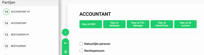 1. Bij de slide 'Accountant' voer je de partij manueel in of importeer je via de KBO, FID-Manager of AdminPulse.