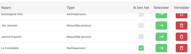 3. De volgende keer klik je bij de Partijen op de knop "Kies uit database" en duid je "Ik ben het" aan voor jouw kantoor.